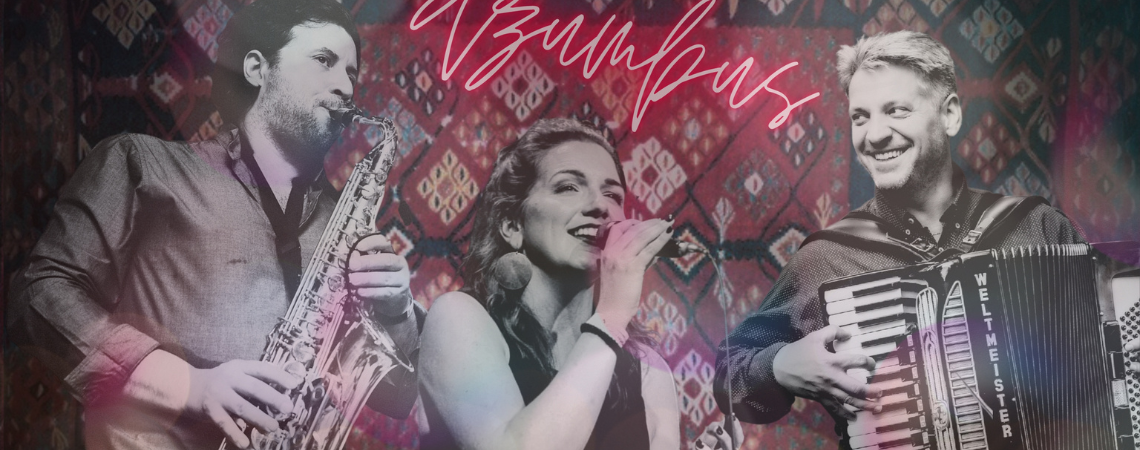 A szerb “džumbus” szó zenebonát, zsivajt jelent, de egyúttal valamiféle zűrzavart is magába foglal. Básits Branka és Wertetics Szlobodán harmonika-ének duója Eredics Dávid fúvós és tamburajátékával kiegészülve kaleidoszkópként mutatja be a balkáni népzene sokszínűségét és szabadságát. A zenekar szerb, bolgár vagy makedón népdalokon keresztül szólít meg minket és hív balkáni hangolódásra